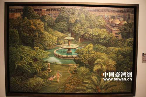 台湾艺术家连建兴的油画作品“浪漫有约”(中国台湾网 芜同 摄)