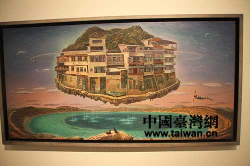 台湾艺术家连建兴的油画作品“石碇之乡愁停泊”(中国台湾网 芜同 摄)