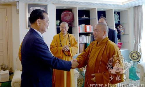 8月22日,释永信等拜访国民党荣誉主席连战。连战与释永信一见如故,双方进行亲切友好地交谈,为促进海峡两岸的和平进行了深入地交流。连战先生非常希望少林文化能够来到台湾,与台湾人民一同分享这一人类瑰宝。希望因缘和合之际,少林寺的法师能够来台湾开创道场,弘法利生。释永信也诚挚邀请连战先生在方便之时,再次赴少林寺参观交流。交谈结束之际,释永信向连战先生赠送了达摩祖师铜像,并合影留念。