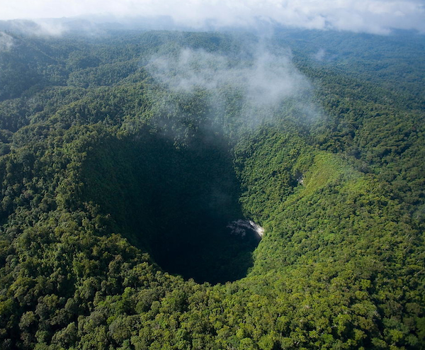 Minyé 天坑坐落在巴布亚新几内亚国的新英格兰岛,它深度可达1673英尺(510米),不得不让人为之惊叹。新英格兰岛遍布火山、石灰岩山脉、湍流和热带雨林等自然景观。然而岛屿的活跃地带骤然消失,形为一个深洞。对于深洞来说,容纳一个半的埃菲尔铁塔可是绰绰有余的。