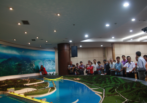两岸记者参观三峡工程展览馆。(中国台湾网 段雯婷 摄)