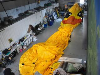 张壮谋指出,为了对抗新屋沿海强风,在桃园展出的小黄鸭,必须要更强化缝纫工法及内部加强条固定,才能呈现国际级稳固鸭体。(中国台湾网 高旭)