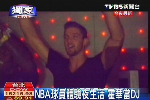 中新网10月12日电 据台湾TVBS报道,NBA火箭跟溜马两队球星难得赴台,当然不能错过台湾的夜生活,TVBS独家拍到火箭队成员Howard和Parsons,晚上11点40分左右,到101夜店里跳舞。