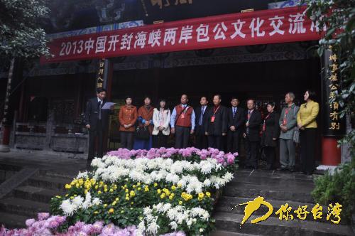 你好台湾网11月4日消息 11月1日上午,2013中国开封海峡两岸包公文化交流活动在开封市包公祠景区拉开帷幕。河南省人民政府台湾事务办公室主任王海鹰,中共开封市委常委、统战部部长、开封新区党工委书记焦跃进,台湾海峡两岸法学交流协会理事长、向阳公益基金会董事长廖正豪,包公在台后人代表、新人类文明文教基金会董事长包忠诒等领导、嘉宾和140余名台湾专家学者出席开幕式。开封市人大常委会副主任曹法英主持开幕式。