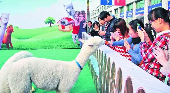 作为第五届农博会·第十五届花博会的一项重要内容,昨日上午,第二届海峡两岸食品博览会在漳州海峡两岸农产品物流城举行开馆仪式。本届两岸食博会汇聚了200多家参展企业,共展出2000多个品种,吃货们有福了。 除了美食,现场还有手控玩弄疯狂赛车、挑战高尔夫等活动。而最招人喜爱的就是主舞台北侧展区内的“神兽”—“草泥马”(学名羊驼)。40多平方米的围栏内,3只萌态十足的“草泥马”,与众多市民零距离接触。不少人拿着胡萝卜喂它们,它们吃饱了就躺下,懒洋洋地晒起了太阳,一旁的小孩、美女不时发出阵阵“好可爱”的感叹声。