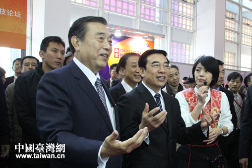 2013北京台湾名品博览会在北京全国农业展览馆新馆开幕,图为北京市市长王安顺与台湾贸易中心董事长王志刚参观展览。(中国台湾网 郭庆娜 摄)