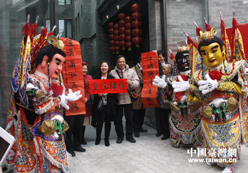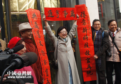 两岸书法家为前门商户得意典藏送去春联。(中国台湾网 郭庆娜 摄)