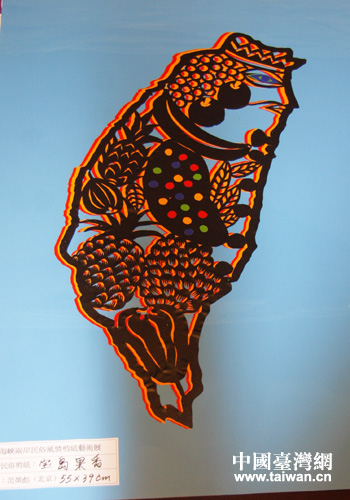 台湾民俗风情剪纸作品《宝岛果香》。(中国台湾网 郭庆娜 摄)