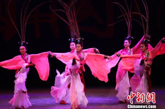 “2014欢乐春节五洲同春”海外春晚首场演出当地时间9日晚间在加拿大多伦多开幕。图为演出的舞蹈《楚腰》。 吕蓁 摄