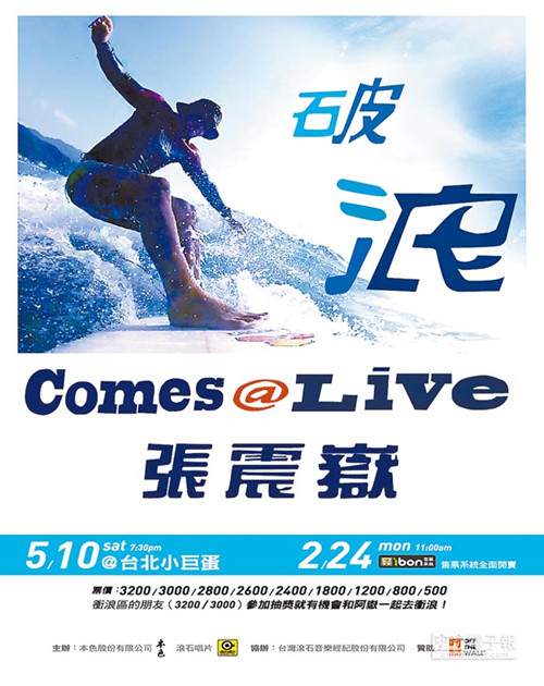 中新网2月11日电 据台湾《中国时报》报道,台湾歌手张震岳出道20年,5月10日将首度在台北小巨蛋举办“破浪Comes@Live演唱会”。