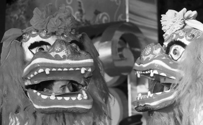 舞狮人员正在准备表演舞狮人员正在准备表演。。