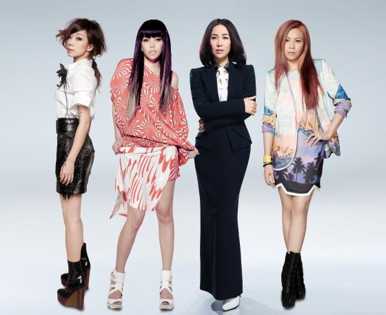 林忆莲(左起)、张惠妹、那英与蔡健雅为公益合体开唱。(台媒图)