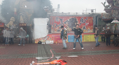 中国台湾网2月13日消息 据台湾媒体报道,为期2天2夜的元宵节台南盐水蜂炮,于今日上午8时在盐水武庙正式启炮。不过因为下雨,直升机启炮作业并不顺利,直升机飞到半空中鞭炮突然熄火,3度经由工作人员点燃后仍熄火,最后只好作罢。