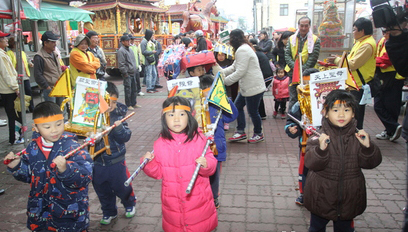 盐水小学学生抬神轿到武庙庆祝蜂炮活动展开。来自台媒
