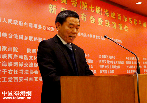 中国台湾网2月19日西安消息 2月17日,由陕西省台办、民革陕西省委和黄帝陵基金会联合主办的第七届清明公祭轩辕黄帝海峡两岸名家书画展新闻发布会暨联谊笔会在西安举行。