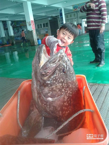 小朋友第1次看到硕大石斑鱼图片来源:台湾《中时电子报》