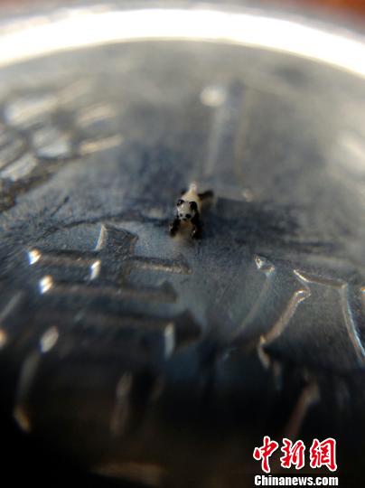 大陆赠台大熊猫团团圆圆的后代圆仔给台湾民众带来了欢乐,也成为台湾艺术家表现的对象。近日,台湾著名微雕家陈逢显创作一只“微雕熊猫”,只有0.5毫米长。