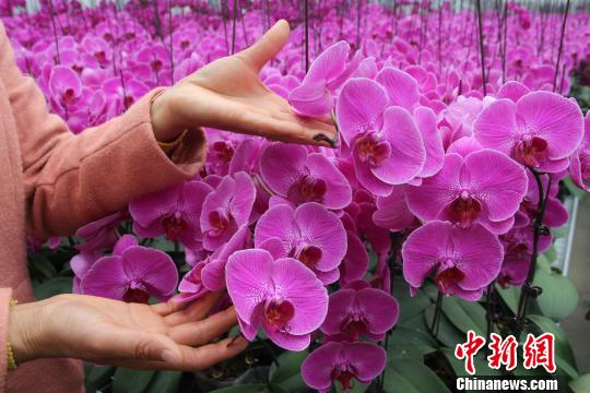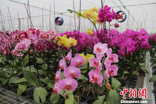 目前遵义台湾村里已有40万株成品蝴蝶兰,逾百个品种。 杨茜 摄