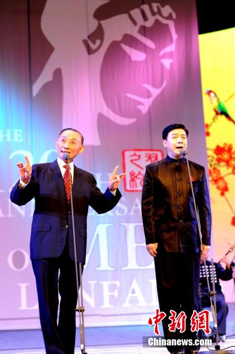 5月10日晚,由两岸京剧表演艺术家带来的20余首经典京剧段子在福建宁德市接替上演。当晚,“两岸一家亲 共圆中国梦”——“双甲之约”纪念梅兰芳诞辰120周年京剧演唱会在宁德唱响,梅葆玖、北京京剧名家赵葆秀、台湾京剧名家魏海敏、唐文华等两岸京剧表演艺术家汇聚于此,共同上演国粹京剧艺术盛宴。图为梅兰芳之子、著名京剧表演艺术家梅葆玖演唱《贵妃醉酒》。中新社发 吕巧琴 摄