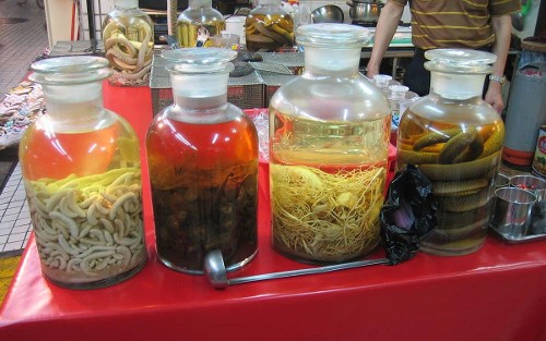 传统的中国文化认为蛇的作用如同万灵药一样,据说它的药用功能可以治疗任何病疾,无论是秃顶还是弱视,而它最著名的功效就是可以提高男性的性能力。当年,当这里还行走着搔首弄姿的烟花女子时,客户们总会搞到一些蛇作为补品。