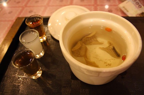 蛇羹也比较著名,会搭配两粒橙色的蛇油和三个杯子呈上来,分别盛有深褐色的蛇血、乳白色的蛇毒和淡黄色的蛇胆汁,都配有烈酒。对初次食蛇的游客来讲,这无疑可以为他们提供更多的勇气。