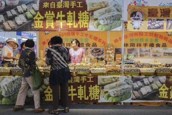 8月14日,市民正在“台湾新生活商品区”选购台湾美食。当日,第30届北京礼品展在中国国际展览中心开幕。此次礼品展特设“台湾新生活商品区”,展出台湾特色的美食和商品。展览将将持续到17日。