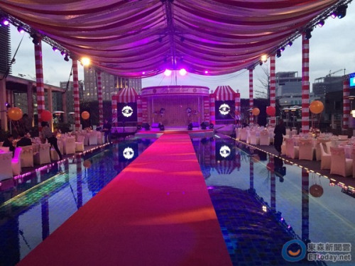 据台湾“东森新闻”报道,周杰伦日前在英国办完超豪华世纪婚礼,9日在台北W Hotel补办户外婚礼,现场许多演艺圈大腕好友纷纷到场祝贺。而婚礼内场也随之曝光,风格大吹俏皮马戏团风,除了有多张小俩口甜蜜合照,红毯架在泳池上,左右都是水,看起来相当浪漫。