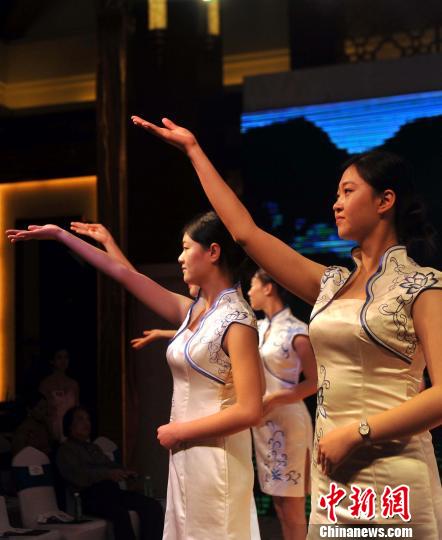 礼仪小姐在发布会上展示礼仪文化。 蒋雪林 摄