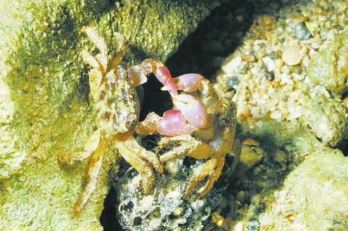 据台湾媒体报道,屏东海洋生物博物馆研究团队日前在垦丁万里桐潮间带发现毛线小相手蟹(上图)和安德逊小相手蟹(下图),这一发现使台湾陆蟹种类再添两种。