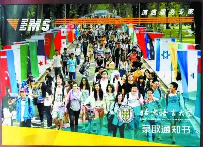 北语的录取通知书今年也大“换脸”,采用了更具国际化、简洁大方的设计,录取通知书的邮寄信封上印有代表北语国际大家庭特色的万国旗,通知书还加上了精致的封套,封套上印有一条可爱的卡通鱼。该校招办主任武玉洲介绍,这条卡通鱼是该校的招生吉祥物 “宝贝鱼”,意在欢迎新生加入北语大家庭,封套的背面印有“德行言语 敦睦天下”的校训。