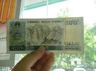 资料图:这张百元币,其他的一切正常,只是在正中间“100”字样的上方,又多了一个“100”的水印。图片来源:钱江晚报