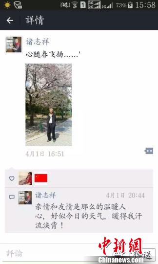 2015年4月1日,罹患尿毒症的诸志祥最后一次在微博更新了自己的照片。邹瑞玥 摄