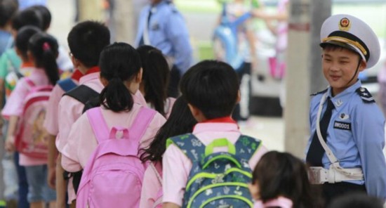 郑州现最萌“娃娃交警” 小学生身穿制服指挥交通