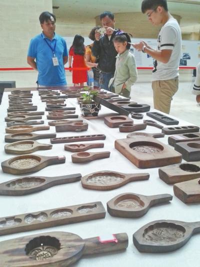 “这些月饼模子是一个月前从民间征集来的,可以让更多人了解我们的中秋文化。”活动主办方负责人介绍说,模子的材质主要是木质,还有一个是陶制的,年代从清代、民国到近现代不等。