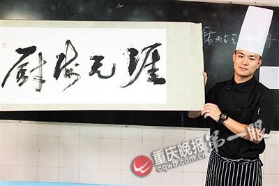 涂建川的同事韩啸告诉重庆晚报记者,涂建川不仅菜品做得好,字也写得漂亮,空闲的时候,都会看他练字,也经常有人围观他写字。