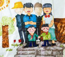 而那之后,在妈妈的鼓励之下,画全家福竟成了每年春节的一个固定节目。和照相馆里那些千篇一律的全家福不同,随着永军的绘画技巧在不断提高,以及对家和爱的理解的加深,永军的画里加入了很多有趣的创意和可爱的奇思妙想。弟弟曾经不止一次骄傲地说,哥哥画的全家福,比照相馆里的好一万倍。永军笔下的全家福里,记录着生活的喜悦:兄弟俩都考了双百,地里的庄稼大丰收,家里买了大电视,自己考上了大学、结婚生子……