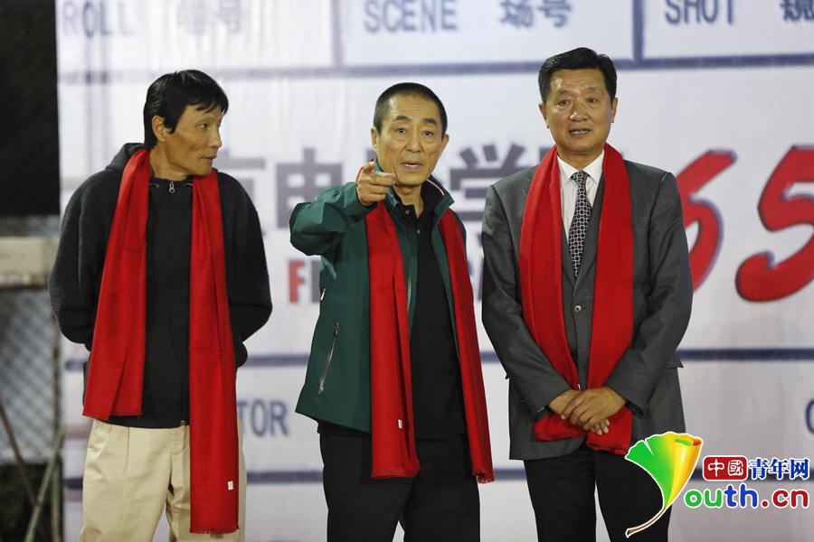北京电影学院78级摄影系张会军(右)、张艺谋(中)和85级摄影系赵小丁(左)。中国青年网记者 张炎良 摄 图片来源:中国青年网