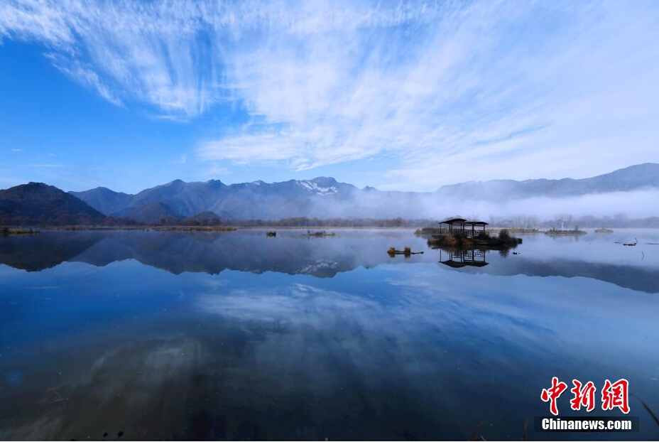 金秋十月,湖北神农架林区大九湖国家湿地公园迎来一年中最美好的季节。湿地四周层林尽染的山色与波光粼粼的水面交相辉映,构成一幅幅美轮美奂的高山湿地景色。大九湖是华中地区面积最大、海拔最高的高山湿地,也是中国为数不多的典型高山湿地地区。湿地区内,有丰富的高山草甸和湿地蕨类植物,还有鹳、鹤、梅花鹿等珍稀动物,具有极高的科考、旅游价值,被称为湖北的“呼伦贝尔”、“神农江南”。 中新社记者 皮亚捷 摄