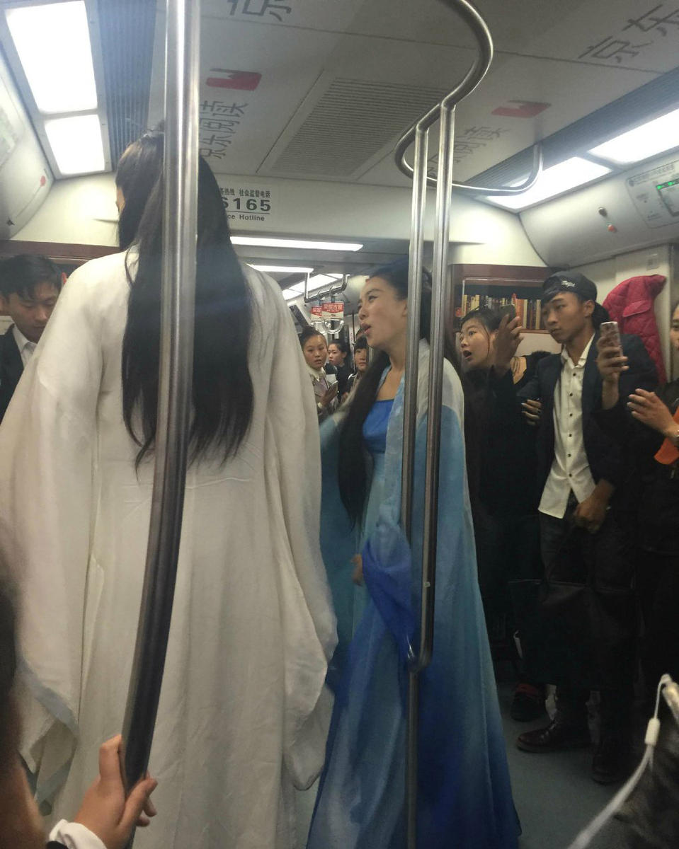 10月27日,据网友@潘木语二先生 爆料:“今儿坐地铁1号线,看到花千骨和白子画在地铁大战,吓死本宝宝了。。。”