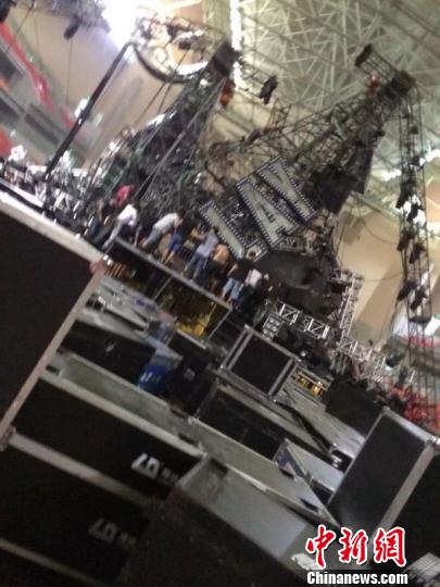记者掌握的现场事故图片显示,事故现场一片凌乱,钢铁结构的多条大型灯架已砸下来,现场工作人员在忙着处置。知情人士披露,一人在现场死亡,其余十多人被送院处置。