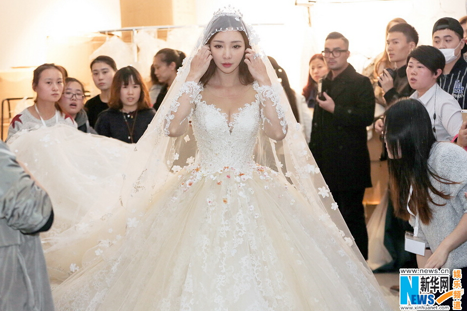 2015年10月30日讯,北京,Shenbai深白2016春夏发布会举行,李艾、钟丽缇、张伦硕、杨恭如等众多艺人到场看秀捧场。本次发布会的最大看点,莫过于“国民女神”柳岩身穿重达50斤的巨型高级定制婚纱压轴走秀,十分惊艳。柳岩款款走上T台,全场瞬间被点燃,闪光灯不断,她浅笑连连,吸睛指数百分百。