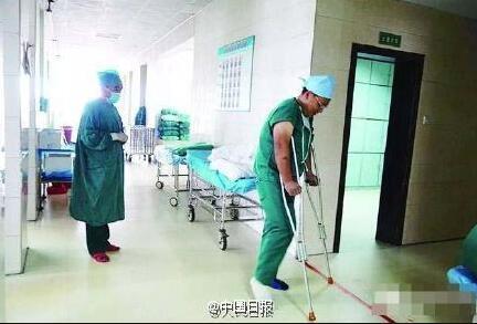 楚天都市报讯(记者陈咏特约记者陈实通讯员侯伶俐李璐)近日,一名拄拐医生为病人做手术的照片在网上引发网友点赞。照片中,穿着手术服的男医生脚缠石膏绷带,或拄着双拐走在病区,或站在手术台上忙碌,其中一张走进手术室的背影照片更是被大家赞为“最美背影”。经记者确认,拄拐医生是孝感市第一人民医院门诊外科的冷勇主任,其不久前遇车祸腿受伤,本打算休息却被病人“点将”,只得带病坚持给病人做手术。