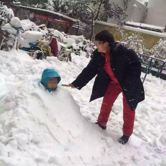 【亲妈!这是个真雪人】今天上午,郑州市民徐先生在北环某小区内,拍到的堆雪人真人版。网友调侃:绝对亲妈,后妈谁敢这样干……(河南商报)