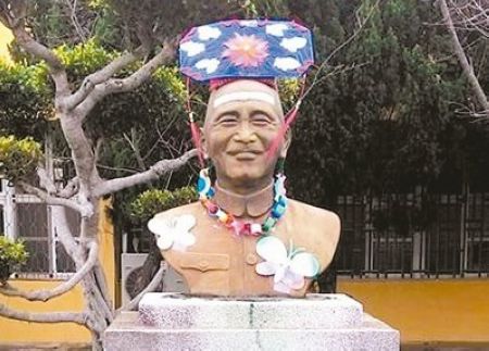 据台湾《联合报》报道,苗栗县铜锣乡兴隆小学的蒋介石铜像在去年圣诞节变身圣诞老公公后,从此每周都由学生设计、变换新造型,如今已扮过状元郎、太后等,成为“百变蒋介石”,不但时时激发师生的创意,还成了吸引游客拍照的新景点。