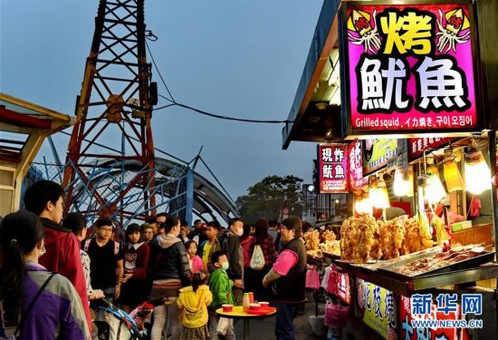 3月6日,游客在台湾淡水夜市游玩。夜幕降临,台湾淡水夜市人潮涌动,名目繁多的当地特色小吃吸引了四面八方的游客前来品尝。 新华社记者 张国俊 摄