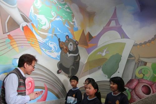 中新网4月1日电 据台湾《联合报》报道,台湾彰化县北斗小学营造“开卷有益彩绘廊道”,请彩绘家沈保杉在楼梯廊道彩绘卡通版台湾黑熊、樱花钩吻鲑、石虎等,希望营造阅读情境,勉励小朋友汲取知识。
