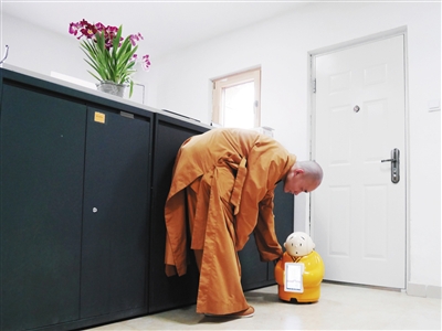 最近,一个呆萌的机器人在网上火了。和普通机器人一样,它身高近60厘米,能跟人语音对话,能明白简单的指令;但不同的是,它身穿黄色僧袍,会说佛经佛法,还动不动就说“我去问问我师父”。它就是一个叫贤二的机器僧。昨日,新京报记者前往龙泉寺——贤二机器僧的家进行了探访。