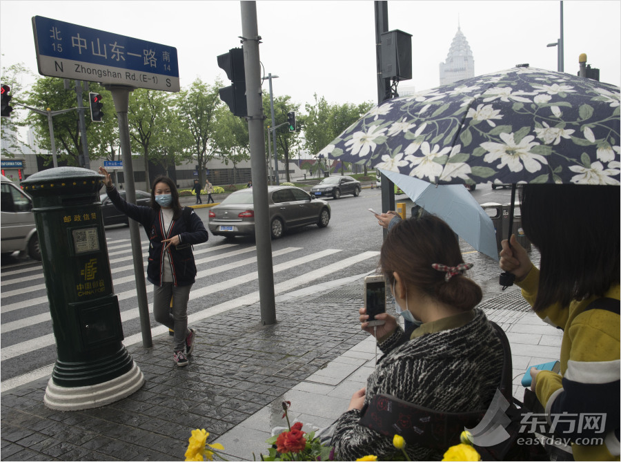 2016年4月20日,上海。落在上海外滩中山东一路编号为002-06的网红邮筒将带上一对可爱的鹿角,成为一道名副其实的风景线。