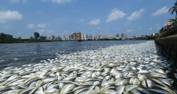 5月4日,海口市琼山区红城湖出现大量死鱼,负责红城湖环卫工作的京海环境公司一天内出动打捞作业船4艘、200余人次,已打捞死鱼30余吨。这些死鱼属于海水鱼,进入淡水湖后环境发生变化,盐度突然降低,导致大量死亡。