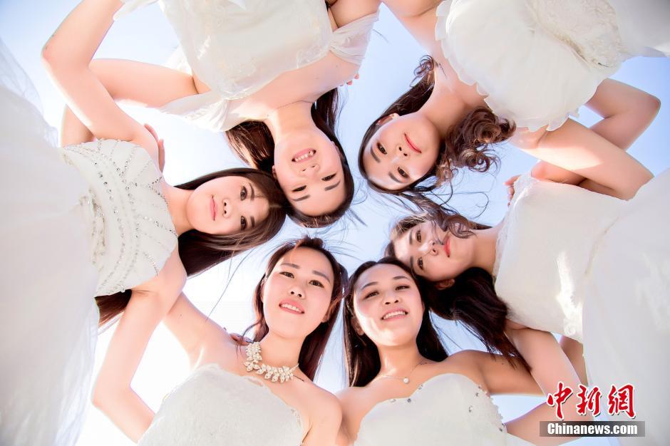 又到一年毕业季,大学生们也开始拍各种各样的毕业照。近日,南阳理工学院护理专业的六名女大学生选择身穿白纱,在校园的各个角落留下美丽影像,与美好的大学时光告别。王彦超 摄